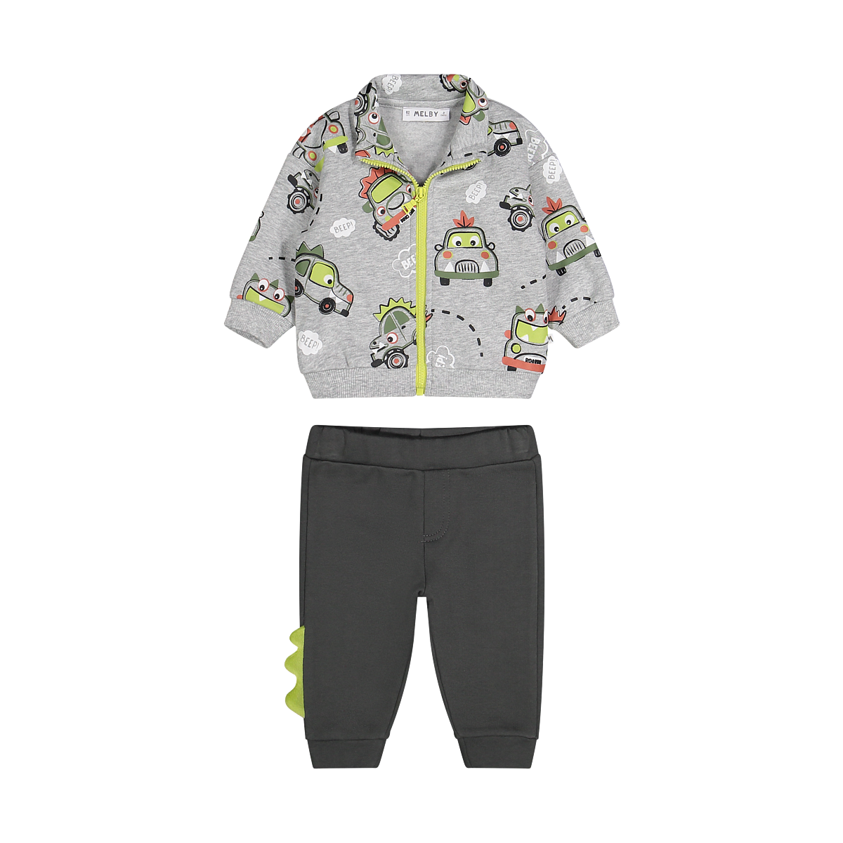 Accelera verso nuove avventure con questo fantastico completino felpato Melby! Decorato con divertenti macchinine, è il set perfetto per piccoli piloti che amano muoversi comodamente e restare caldi tutto il giorno.