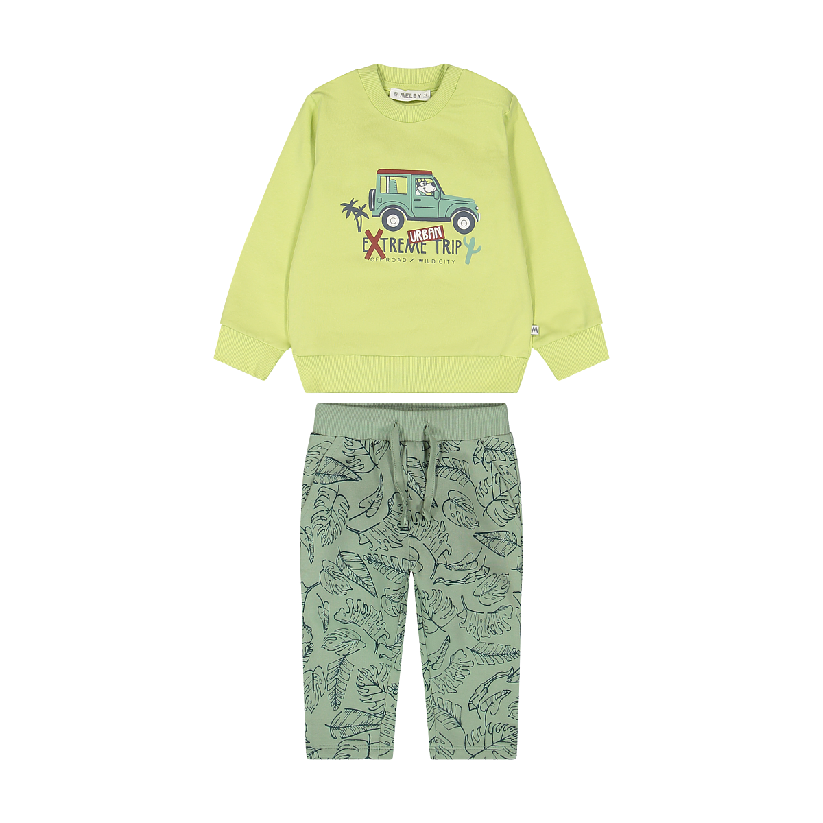 Parti per un'avventura nella savana con questo adorabile completino in cotone Melby a tema Safari! Perfetto per la primavera e l'estate, unisce freschezza, comfort e un design che stimola la fantasia dei piccoli esploratori.