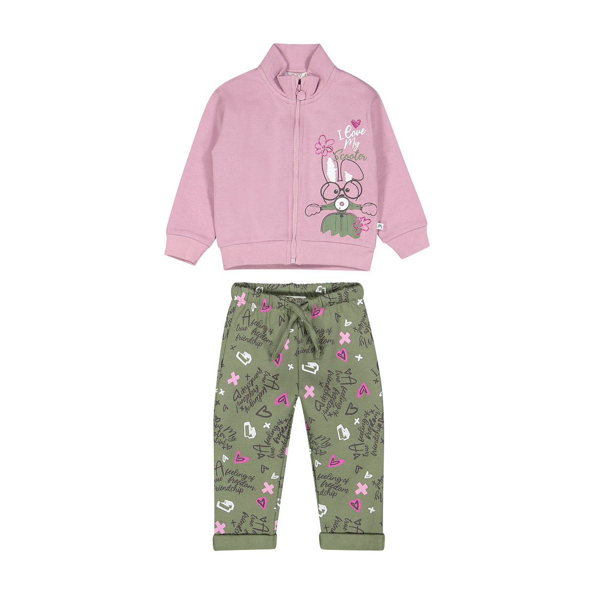 Scopri la tenerezza irresistibile di questo adorabile completo tuta felpata Melby con il dolce coniglietto! Un set che unisce morbidezza, calore e un tocco di dolcezza per accompagnare le giornate più belle della tua bambina.