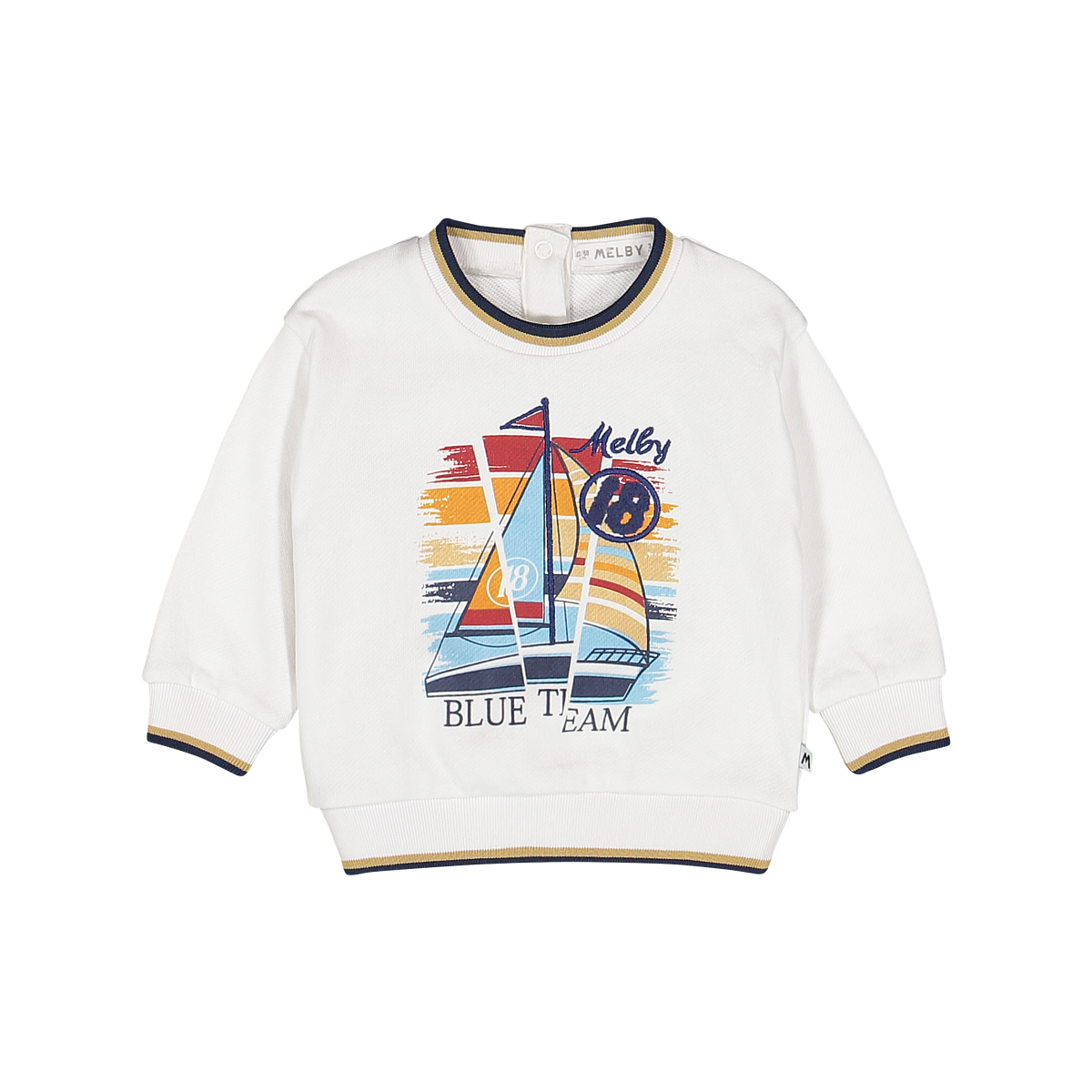 Naviga verso nuove avventure con questa fantastica felpa garzata Melby! La stampa barca a vela porta un tocco marinaro che stimola la fantasia, mentre il tessuto garzato garantisce comfort e libertà di movimento per ogni giornata.