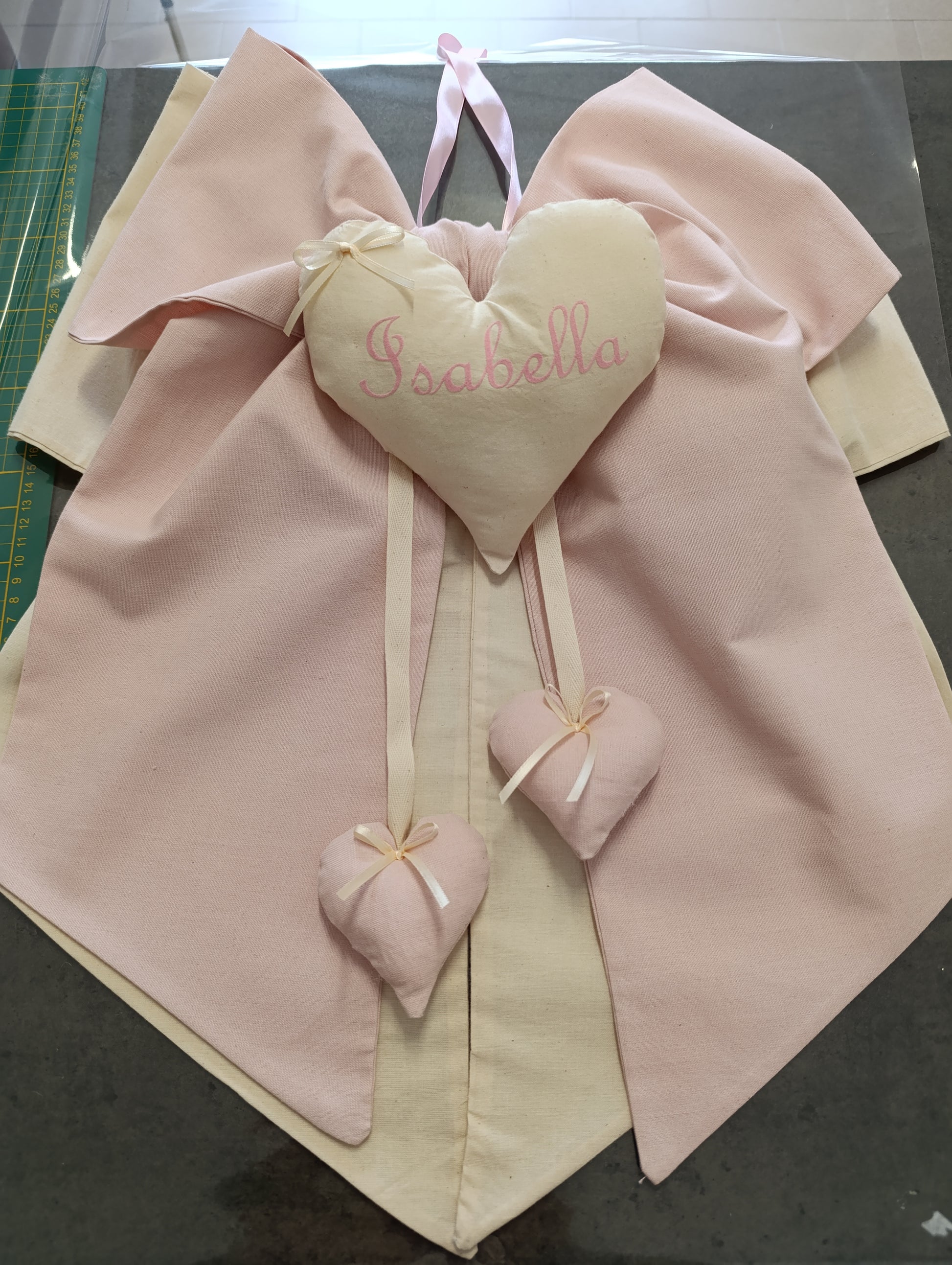 Fiocco nascita artigianale realizzato in cotone grezzo naturale, interamente fatto a mano con cura e attenzione ai dettagli. Ogni pezzo è personalizzato secondo le tue preferenze, rendendolo un regalo unico e speciale per celebrare l'arrivo del tuo bambino. La lavorazione artigianale garantisce qualità superiore e un tocco elegante che distingue questo prodotto dai pezzi industriali. Perfetto per chi ricerca autenticità e unicità. Contattaci per concordare il tuo fiocco nascita su misura.
