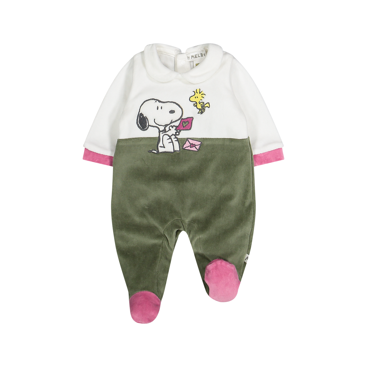 Questa tutina in ciniglia Melby con Snoopy unisce un tocco vintage a una simpatia irresistibile. Morbida e calda, è perfetta per coccolare i più piccoli con stile allegro e un pizzico di nostalgia. Ideale per ogni momento di gioco o relax, regala comfort con un sorriso!